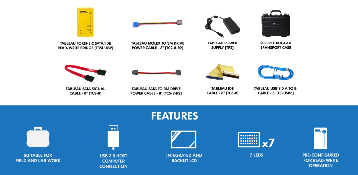 TK35U-RW+ Forensic USB 3.0 SATA/IDE Read-Write Bridge Rugged Case Bundle: