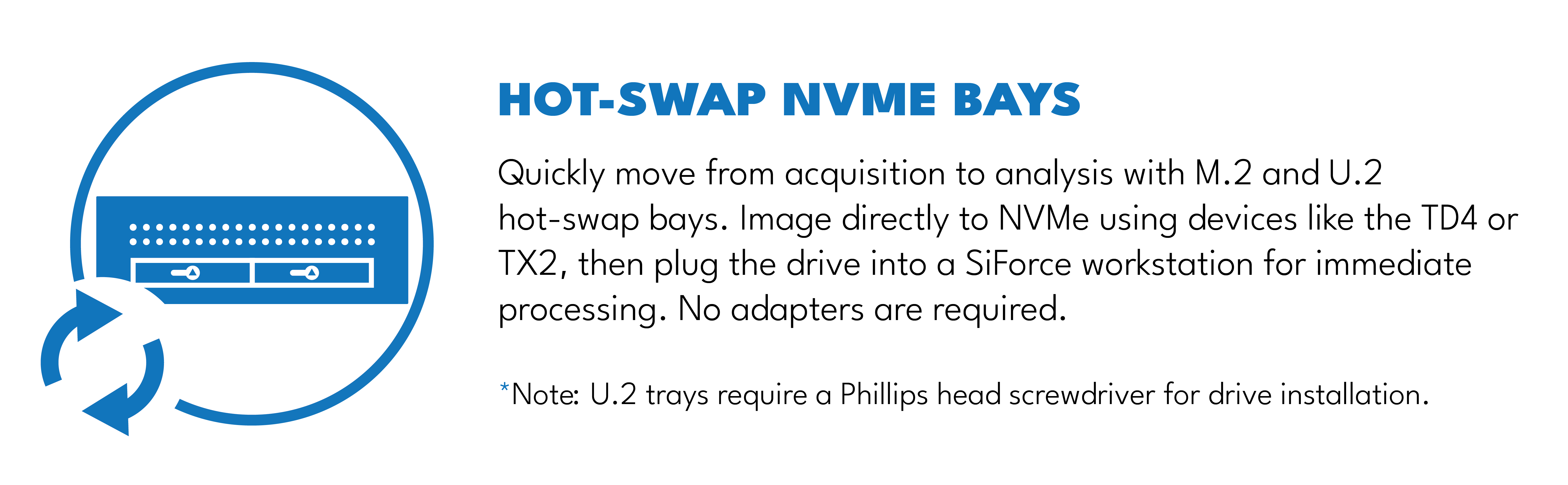 Our flagship Intel-based Forensic Workstation running Intel's latest Core Ultra 9 desktop processor in an optimized configuration that includes hot-swap NVMe bays, liquid cooling, Thunderbolt Share, and enterprise-grade NVMe drives.